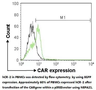 “通過流式細胞儀檢測EGFP的表達,在電穿孔后24小時,NEPA21轉染后PBMCs中hCR-2的表達率約為60%,細胞存活率高達95%。”