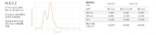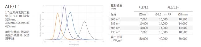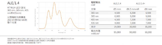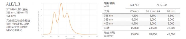 ALE/1 UV-LED光源將汞放電燈的輻射功率和光譜特性與LED技術的TCO和工藝優勢相結合。遵循平臺概念的方法,ALE/1能夠在光路中組合多達5個高性能LED。這可以在寬光譜范圍內的大幅度提高出射功率。