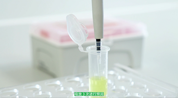 吸液前,先將新的吸頭放進待吸樣本中吸放3次液體進行預潤,在吸頭內(nèi)部形成同質(zhì)膜,提高移液準確度,保持一致的重復性。