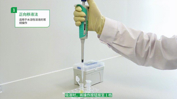 吸液:按下操作按鈕至1檔并保持,擠出吸頭內(nèi)空氣。然后將吸頭沒入液面下,緩慢釋放操作按鈕完成吸液操作。
