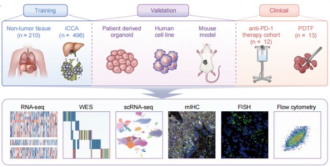 肝內膽管細胞癌(iCCA)是指起源于肝內二級膽管及其分支以上的上皮腺癌,發病率占肝臟原發惡性腫瘤的10%到15%,并且在過去的幾十年中,確診病例和死亡率穩步上升,目前主要的治療方法還是采用原發性肝癌相同的手術切除的辦法,輔以免疫檢查點抑制劑(ICIs)和針對腫瘤微環境(TME)的相關治療手段,但是針對無法切除的iCCA目前尚無切實有效的治療措施。