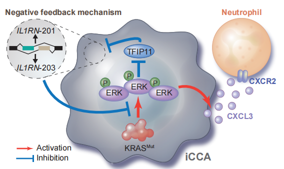 本研究全面介紹了選擇性mRNA剪接的情況,并確定了由IL1RN選擇性剪接產生的新的炎癥檢查點,這為治療KRAS突變的iCCA提供了一種有效的選擇。更廣泛地說,對這種類型的負反饋環路的深入研究將有助于揭示KRAS突變癌癥的獨特生物學,從而推動對這些受影響患者的靶向策略的探索。