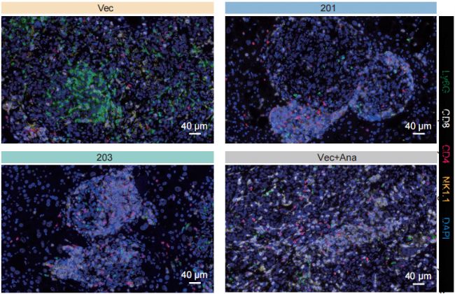 圖:IL1RN-201/203或Anakinra治療組在Yak和KP小鼠中CD8+T細胞的滲透顯著增加