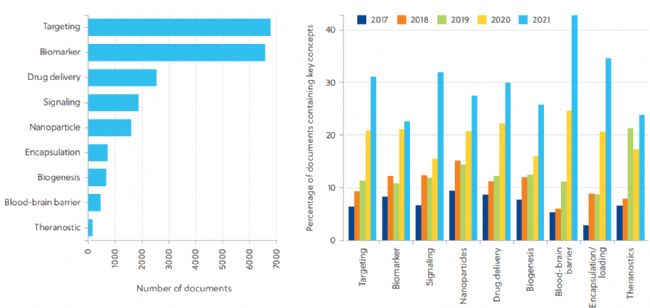 圖3. 外泌體在不同研究領域的論文情況及趨勢