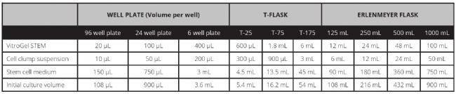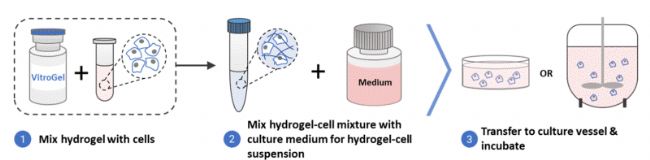 4、以 2:1 (v/v) 的比例輕輕混合VitroGel STEM 與細胞懸液。(查看表1或表2不同培養周期不同培養容器的推薦體積)