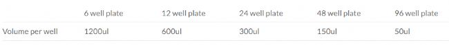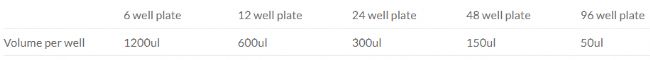 6、將所需體積的混合物添加到培養容器中,并在37°C,5% CO2的條件下孵育(見表1和表2)。