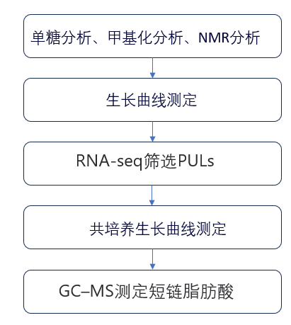 牛膝是治療骨質疏松癥的著名中藥。多糖是形成腸道微生物群的主要因素,是雙棱草的主要成分。然而,雙歧桿菌多糖對人體腸道菌群的生物活性尚不清楚。本文從苦參中提取并純化了平均分子量為93.085 kDa的果膠多糖A23-1。A23-1由鼠李糖、葡萄糖醛酸、半乳糖醛酸、葡萄糖、半乳糖和阿拉伯糖組成。GC-MS、部分酸水解和NMR結果表明,A23-1的主鏈由1,2,4 - rhap和1,4 - glapa組成,分支由半乳糖、阿拉伯糖、葡萄糖和葡萄糖醛酸組成。進一步,發現A23-1被降解為單糖和片段。以擬桿菌(Bacteroides thetaiotaomicron, BT)為模型,提出3個多糖利用位點(PULs)可能參與了A23-1的降解。BO產生的降解產物可能不支持益生菌的生長。此外,擬桿菌和益生菌利用A23-1生成乙酸酯和丙酸酯為主要終產物。這些發現提示A23-1可能是人類腸道擬桿菌的食物來源之一。