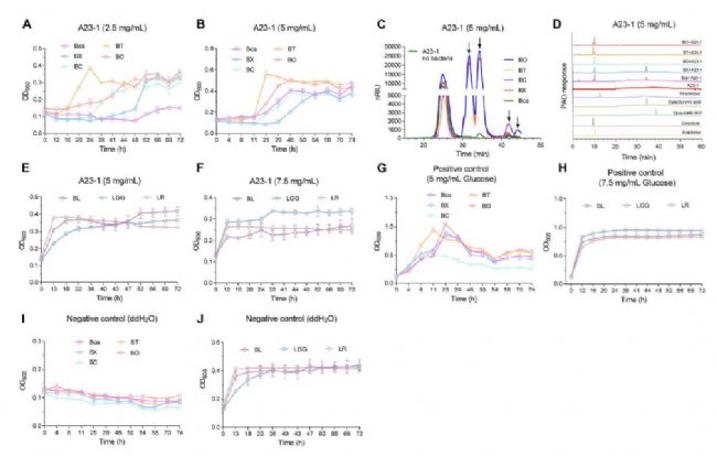 3. 卵形擬桿菌(Bacteroides ovatus)產生的A23-1降解產物可能不支持益生菌的生長