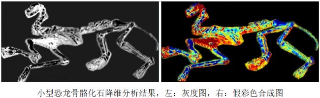 接下來我們對恐龍化石采取高光譜降維分析的方法,將恐龍化石與背景土壤分離開,結果如下: