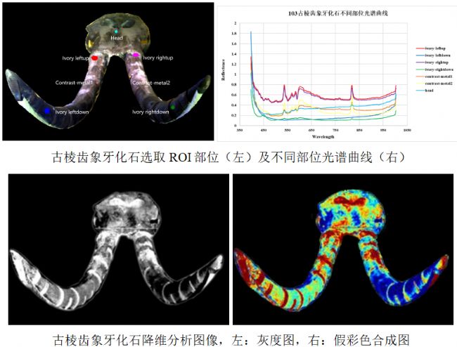 我們選取古棱齒象牙化石的不同部位了解它們的光譜差異,如下: