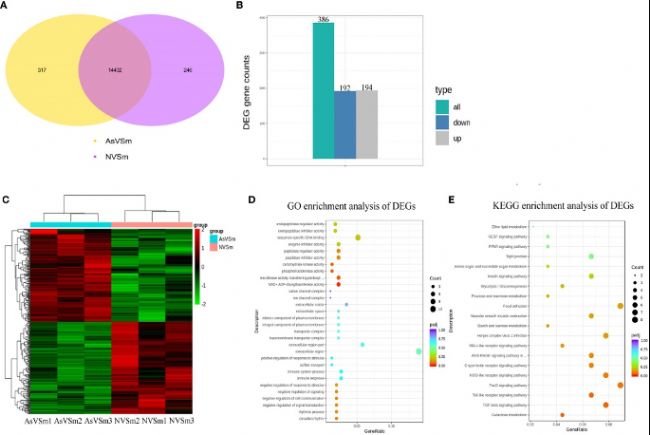 (A) Venn圖顯示了AsVSm和NVSm基因的差異。