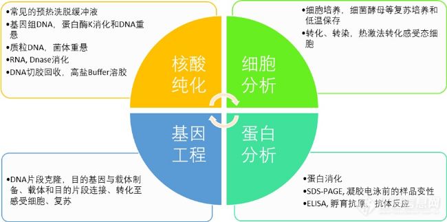 細胞、克隆、組織樣本的DNA/RNA/蛋白提取實驗等。