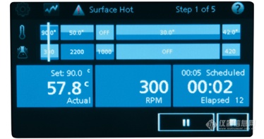 4.3寸彩色LCD觸摸屏更直觀,可實時查看程序狀態欄并保存,即使戴橡膠手套操作也可快速響應;支持程序編程和存儲,設備內存可存儲5組實驗程序、每組程序多達5步,可使用USB存儲不限次數地進行數據記錄和程序存儲,適用于多步驟、重復性實驗;支持軟件升級和多達六種操作語言。