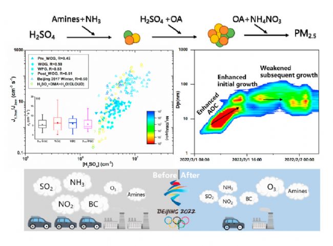 氣溶膠顆粒對地球-大氣系統具有深遠的影響。作為對流層氣溶膠的重要來源,新粒子生成(NPF)在云凝結核(CCN)形成中起著重要作用,并導致中國特大城市嚴重的霧霾事件。在受污染的大氣中,NPF和參與成核的氣態物質的行為尚不清楚。硫酸(SA)是清潔大氣中參與成核的主要物質,其他氣態前體物,例如氨、二甲胺(DMA)和二羧酸,會在污染環境中增強成核。由于氣態前體和可凝蒸氣豐富,成核機制在不同位置會有所不同。COVID 19封鎖期間的研究表明,NPF事件的生成率(J3)和增長率(GR)的結果各不相同。在未來空氣質量改善的情況下,大氣NPF在污染大氣中的行為仍不確定,需要進一步評估。2022年北京冬奧會為研究人為減排對中國特大城市成核和生長過程的影響提供了難得的機會。這項研究的重點是冬季奧運會前后NPF事件和氣態前體的演變,以了解它們在霧霾形成中的作用并為未來制定污染減排政策提供信息。