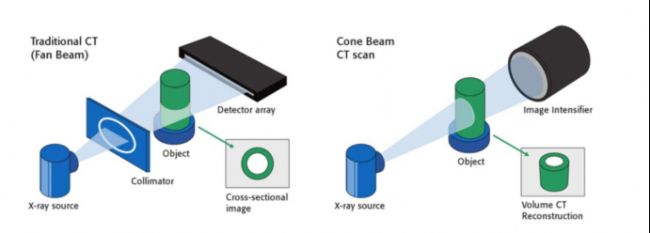 扇形束CT和錐形束CT對(duì)比(圖片來(lái)源網(wǎng)絡(luò))