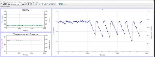 Q-Box Aqua用于通過間歇流動呼吸測定法測量代謝O2消耗量,其中測量是在不將魚(或其他水生生物)從室內移除的情況下依次進行的。在兩次測量之間用淡水沖洗腔室。根據鹽度、溫度和壓力校正的溶解氧數據顯示在軟件中,并用于計算VO2。Q-Box AQUA包裝的所有組件均裝在堅固的防風雨箱中,便于運輸和儲存。