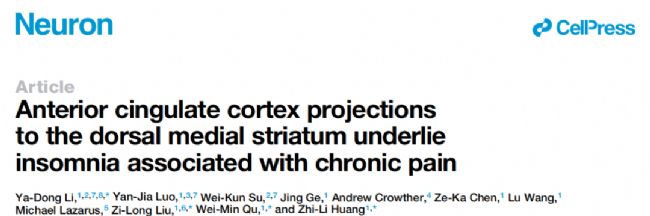 2024年2月13日復旦大學黃志力團隊在Neuron雜志上發表文章揭示了慢性疼痛增強ACC-DMS環路D1-MSN神經元突觸可塑性介導失眠的發生。