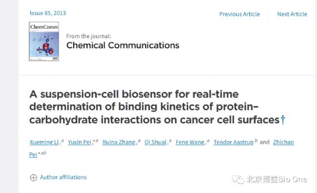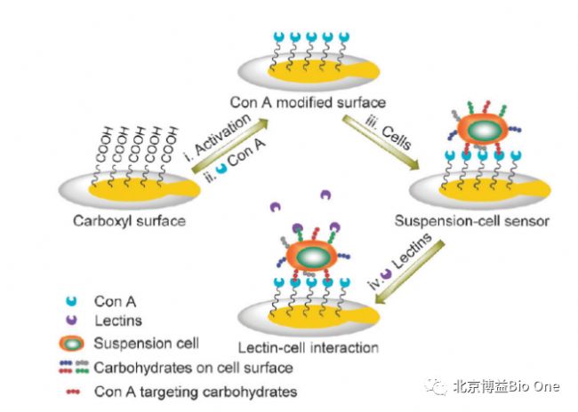 導(dǎo)讀:描述了一種基于凝集素的懸浮細胞生物傳感器,可利用QCM技術(shù)無標(biāo)記檢測腫瘤細胞表面糖基與蛋白相互作用的結(jié)合動力學(xué)。與傳統(tǒng)的生物傳感器相比,這種細胞生物傳感器能夠?qū)崟r、無標(biāo)記地原位檢測懸浮腫瘤細胞表面的糖基化情況,獲得更加接近于生物環(huán)境下的相互作用信息。