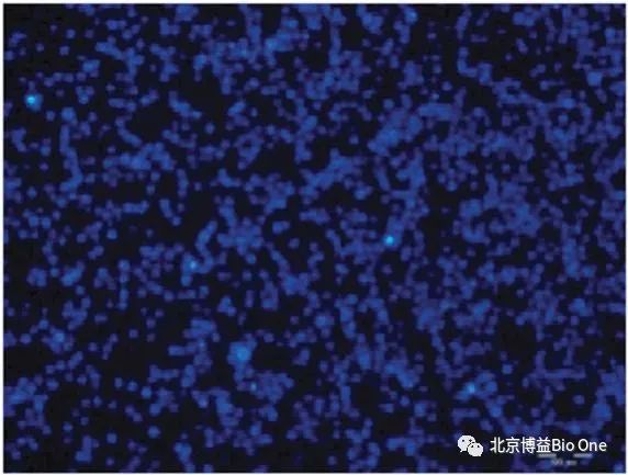 為了評估懸浮細胞在芯片表面的捕獲情況,可以使用Hoechst染料對細胞核進行染色,在熒光顯微鏡下進行觀察。如圖2所示,懸浮細胞已被成功地捕獲到了芯片上,且細胞分布均勻。
