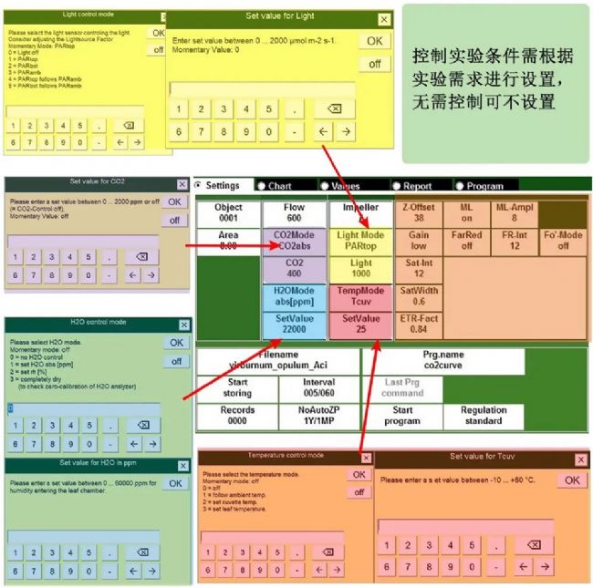 點擊軟件界面中的Impeller,可以設置葉室風扇的速度,標準設置為7,該數值為風扇轉速的檔位,風扇的作用是混勻葉室內局部小環境的氣體。對于光合作用過程中氣體交換微弱的植物,如林下的陰生植物,轉速可以設置為5,或者更小的數值。