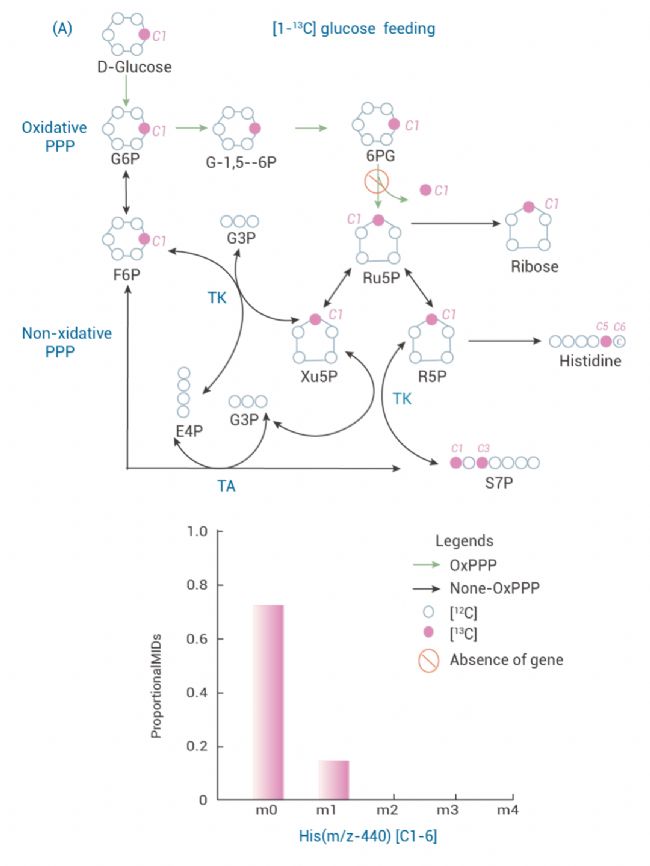 圖 1. R. solanacearum F1C1 中通過13C標記確認OxPPP 和 Non-OxPPP 代謝途徑[2]。