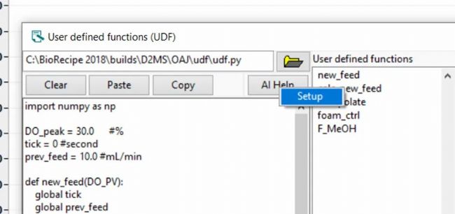 UDF,即用戶自定義函數(shù)(User-defined Function),是生物反應(yīng)器(迪必爾生物)配套軟件D²MS的一個(gè)特色功能。通過(guò)UDF功能,用戶可以設(shè)置自己的控制邏輯,通過(guò)設(shè)定條件與計(jì)時(shí)器,實(shí)現(xiàn)更精細(xì)的生物過(guò)程控制。