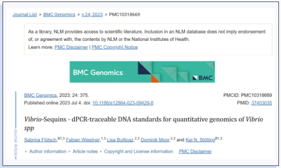 弧菌是一種普遍存在的革蘭氏陰性菌屬,廣泛存在于溫帶水生和海洋環境中,隨著水溫升高,給人類健康帶來新的問題,弧菌由100多種弧菌屬組成,其中12種可致人類感染,其中霍亂弧菌最為常見,可引起嚴重腹瀉病,其他兩種常見的非霍亂弧菌是副溶血性弧菌和創傷弧菌,與弧菌病有關,例如傷口感染、敗血癥和胃腸炎,主要通過接觸受污染的水和食用受污染的海產品(主要是牡蠣)傳人;【谋碚髋c檢測正在從基于培養的傳統方法轉向新方法的應用,如定量PCR,數字PCR,NGS等。瑞士科學家發表于BMC Genomics的文章“Vibrio-Sequins - dPCR-traceable DNA standards for quantitative genomics of Vibrio spp”建立Vibrio-Sequins的DNA標準使用數字PCR(dPCR)進行絕對定量,再通過DNA標準品對弧菌屬進行NGS測序定量分析,降低文庫制備和測序的技術偏差。
