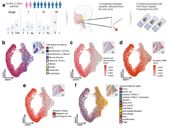 Fig 1. OSCC患者樣本的ST分析和細胞反褶積實驗設(shè)計概述