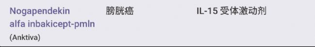 Nogapendekin alfa inbakicept-pmln 是一種白細(xì)胞介素 15 (IL-15) 受體激動劑,與卡介苗 (BCG) 聯(lián)合用于治療對 BCG 無反應(yīng)的非肌層浸潤性膀胱癌 (NMIBC) 成人患者,這些患者伴有或不伴有乳頭狀腫瘤的原位癌 (CIS)。