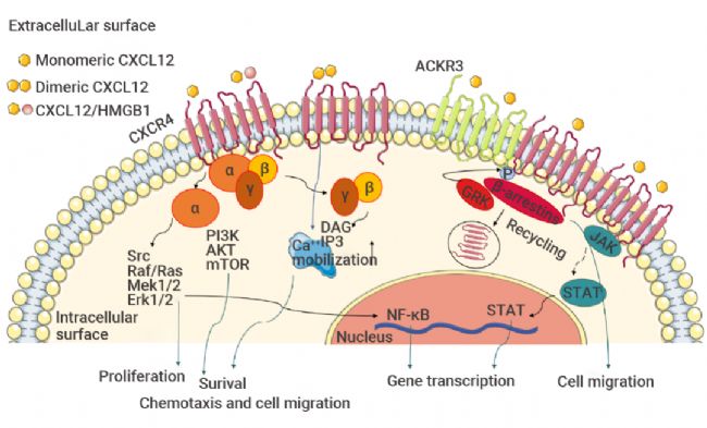 Mavorixafor 可阻斷 CXCR4 配體、基質(zhì)衍生因子-1α (SDF-1α)/CXC 趨化因子配體 12 的結(jié)合 (CXCL12)。SDF-1/CXCR4 在白細(xì)胞進出骨髓室的運輸和歸巢中發(fā)揮作用。WHIM 綜合征患者中發(fā)生的 CXCR4 受體基因功能突變導(dǎo)致對 CXCL12 的反應(yīng)性增加以及骨髓中白細(xì)胞的滯留。Mavorixafor 抑制與 WHIM 綜合征相關(guān)的野生型和突變 CXCR4 變體對 CXCL12 的反應(yīng)。
