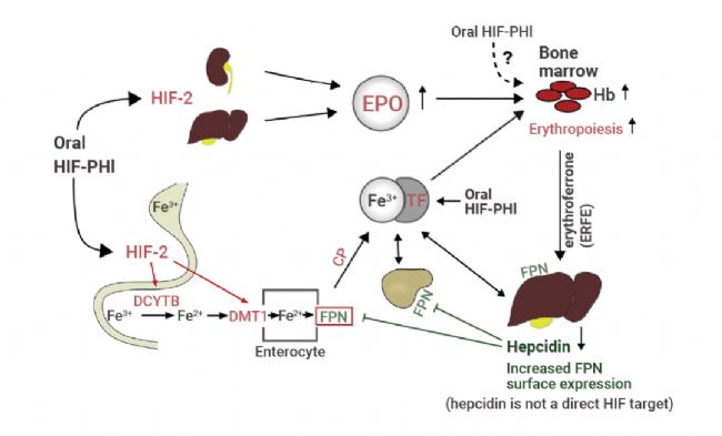 HIF-PHI 可激活 HIF 氧感應(yīng)通路,可有效糾正和維持非透析和透析依賴性 CKD 患者的血紅蛋白水平。除了通過增加內(nèi)源性促紅細(xì)胞生成素的產(chǎn)生來促進紅細(xì)胞生成外,HIF-PHI 還可降低鐵調(diào)素水平并調(diào)節(jié)鐵代謝,從而提高總鐵結(jié)合能力和轉(zhuǎn)鐵蛋白水平,并可能減少靜脈補鐵的需要。詢價與訂購: