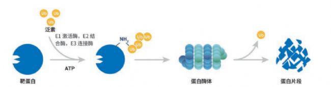 PROTAC是一種異雙功能分子,結(jié)構(gòu)由兩個(gè)配體通過(guò)Linker連接而成,其中一個(gè)配體可結(jié)合目標(biāo)蛋白(Protein of interest, POI),另一個(gè)配體可以靶向E3連接酶。其本質(zhì)是存在于所有真核生物中的天然蛋白降解機(jī)制——泛素-蛋白酶體途徑(Ubiquitin-Proteasome Pathway, UPP)。該途徑涉及一個(gè)三酶級(jí)聯(lián)反應(yīng),即泛素分子在泛素激活酶(E1)、泛素結(jié)合酶(E2)及泛素連接酶(E3)等系列酶作用下,將細(xì)胞內(nèi)蛋白質(zhì)分類并選中靶蛋白,并對(duì)靶蛋白進(jìn)行特異性修飾,最終形成靶蛋白多聚泛素鏈并被蛋白酶體識(shí)別和降解。其中,E1激活酶和E2結(jié)合酶參與的過(guò)程稱為泛素的激活,單獨(dú)的泛素本身并沒(méi)有任何生物功能,只是一種分子標(biāo)記蛋白,發(fā)揮作用的前提是必須有ATP來(lái)提供能量。
