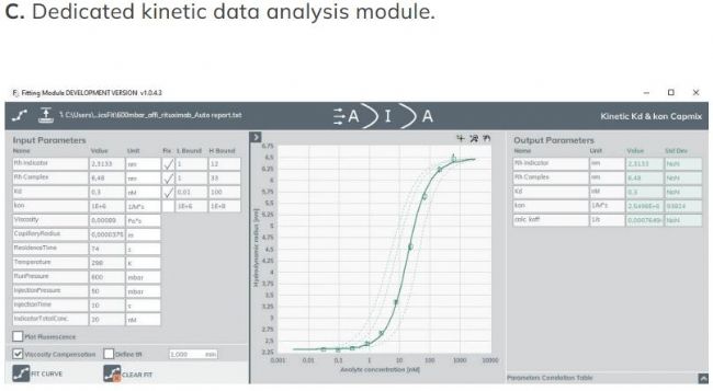 · Fidabio數據分析軟件模塊擬合數據以確定動力學速率常數(圖3c)。