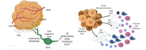 具體案例:Marissa Howard等人展示了乳腺癌細胞如何通過釋放不同大小的EVs來影響免疫系統,進而影響腫瘤轉移。這些發現強調了EVs在腫瘤免疫抑制和轉移中的重要作用。