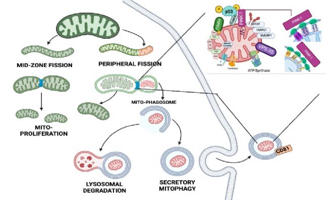 實驗證據:Purva Gade等人通過質譜分析和超分辨率顯微鏡技術,證明了分泌性米托自噬在體內和體外均存在,并可作為新的治療靶點。
