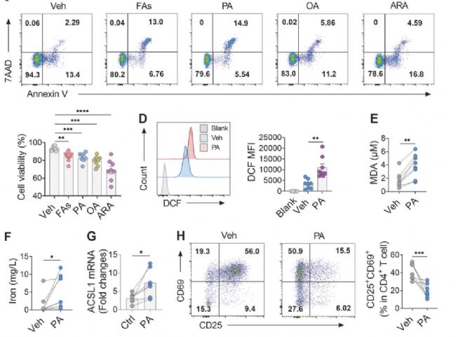 圖3、PA干預ATAAD患者CD4+ T細胞鐵死亡增加和細胞功能下降