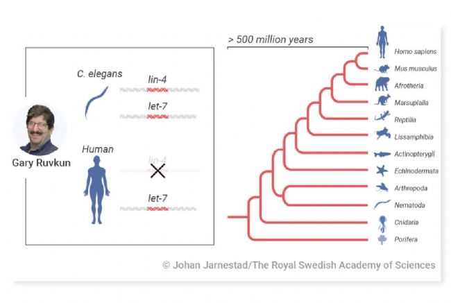 右圖:加里•魯文于 1952 年出生在美國加利福尼亞州伯克利。他在 1982 年從哈佛大學獲得博士學位。1982 年至 1985 年,他是麻省理工學院(MIT)的博士后研究員。1985 年,他成為馬薩諸塞總醫院和哈佛醫學院的高級研究員,目前是遺傳學教授。