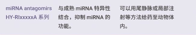 為了方便廣大科研工作者開展 miRNA 功能研究,MedChemExpress (MCE) 根據 miRBase 數據庫中人、小鼠、大鼠的成熟 miRNA 序列自主設計開發了一系列研究 miRNA 功能的工具:miRNA mimics,miRNA inhibitors,miRNA agomirs 和 miRNA antagomirs。目前這些 miRNA 相關產品享 65 折促銷活動,歡迎廣大客戶咨詢 miRNA 相關定制服務。