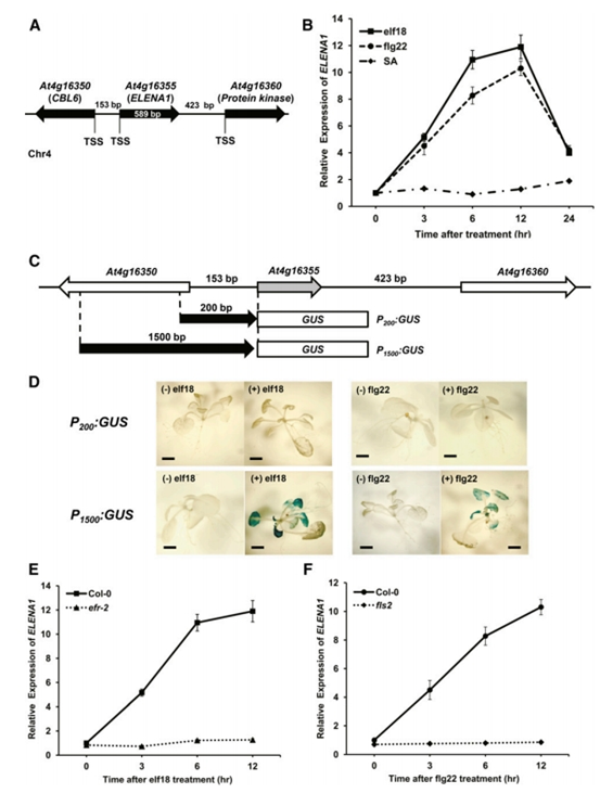 圖1.ELENA1的轉錄水平由elf18和flg22誘導