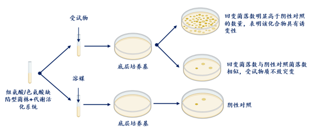 Ames試驗,又稱細菌回復突變試驗(Bacterial Reverse Mutation Test),于1975年建立并不斷發展完善,至今已成為國際上通用的遺傳毒理評價體系的必檢項目,同時也是許多遺傳毒理學新興技術發展過程中對照驗證結果的試驗之一,廣泛應用于化合物的致突變性和潛在致癌性的初篩檢驗。