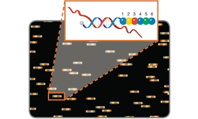 通過在基于光譜鑒別的多路復(fù)用技術(shù)中添加空間和時(shí)間維度,已經(jīng)開發(fā)出能夠同時(shí)識(shí)別和定位數(shù)百和數(shù)千個(gè)生物分子標(biāo)靶的多路復(fù)用技術(shù)。而用于基因表達(dá)分析的分子條形碼掃描就是這樣一種技術(shù),利用核酸雜交來識(shí)別DNA和RNA分子標(biāo)靶,并將其作為產(chǎn)生熒光染料順序排列的模版。