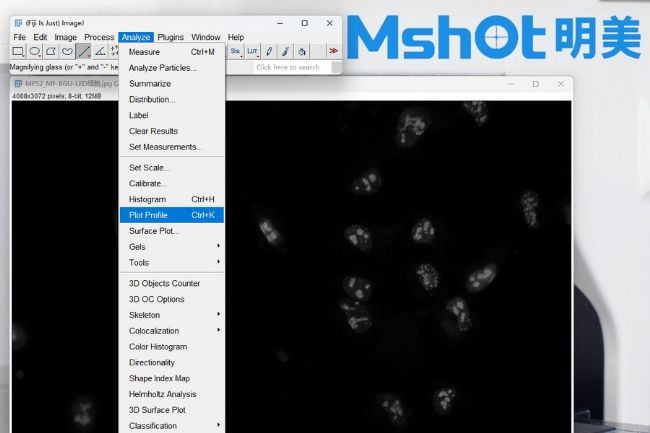 熒光強度分析是論文常用技能之一,它可以量化熒光強度,從而進行對比分析或統計分析,得出可信的結果。今天我們就來介紹下如何用明美顯微數碼測量分析系統和ImageJ快速實現徑向熒光強度分析。