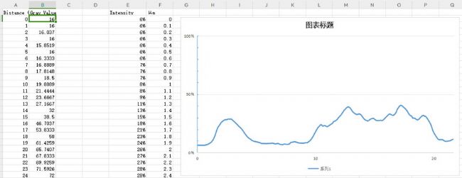 一個小提醒,如果想在Excel里做出像上面論文的圖片,可能還需要經過數據處理,前列是像素,需要根據軟件標尺換算成尺寸,通常是μm;后列是熒光強度,因為數據是8bit的,因此數值是0-255,按255為100%做個換算來畫Y軸。