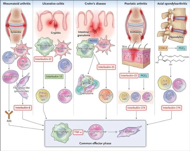 4.2.Schett G, McInnes IB, Neurath MF. Reframing Immune-Mediated Inflammatory Diseases through Signature Cytokine Hubs. N Engl J Med. 2021 Aug 12;385(7):628-639. doi: 10.1056/NEJMra1909094. PMID: 34379924.