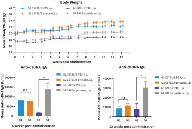 降植烷(Pristane)誘導(dǎo)的SLE小鼠模型可以較好地模擬SLE的癥狀,對(duì)我們尋找SLE的致病機(jī)制、開(kāi)發(fā)針對(duì)性的干預(yù)措施以及更具潛力的治療藥物都有重要作用。