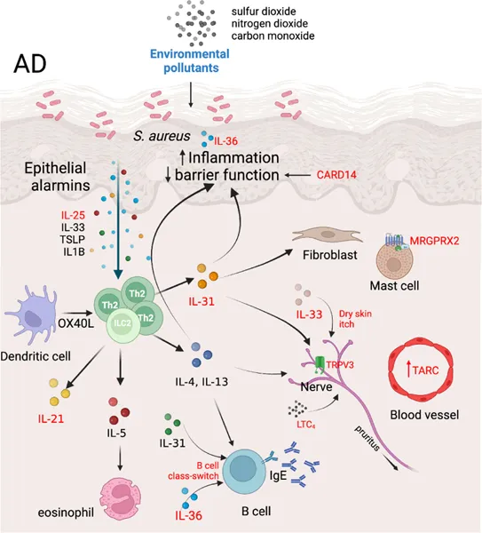 特應(yīng)性皮炎(Atopic Dermatitis, AD)是一種慢性復(fù)發(fā)性炎癥性皮膚病,臨床主要表現(xiàn)為反復(fù)發(fā)生的皮膚炎癥和瘙癢。AD的病因及發(fā)病機(jī)制復(fù)雜,涉及遺傳、免疫、感染、環(huán)境、精神等多種因素,與皮膚屏障功能受損關(guān)系密切。為了更好地研究AD的發(fā)病機(jī)制及治療方法,往往需要?jiǎng)游锬P偷膮⑴c。