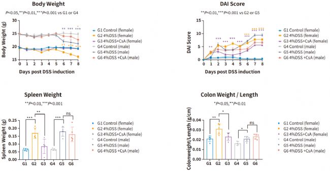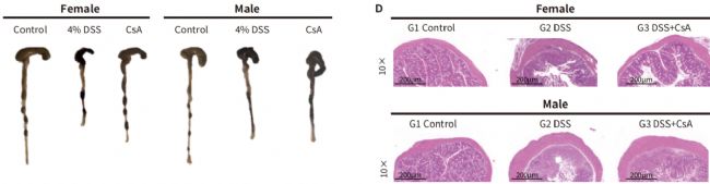 圖9. 4% DSS誘導(dǎo)的炎癥性腸病小鼠模型的臨床特征與病理切片。