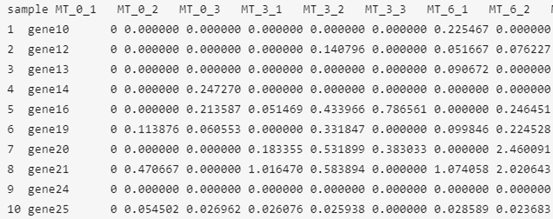 顏色越深,代表這個表型數(shù)據(jù)與這個樣本的基因表達量關(guān)系越密切。將此步驟的數(shù)據(jù)進行保存,命名為file1。