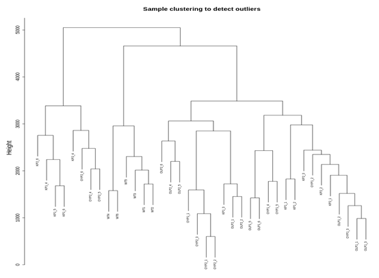 對所有樣本進行聚類,觀察是否有離群值或異常值,如果有離群值則要刪去離群的樣本。
