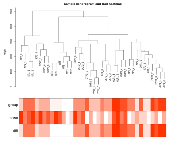 3. 讀入樣本信息并進行篩選,得到表型數(shù)據(jù)與表達量數(shù)據(jù)二者共有的樣本數(shù)據(jù),并重新構(gòu)建聚類樹。